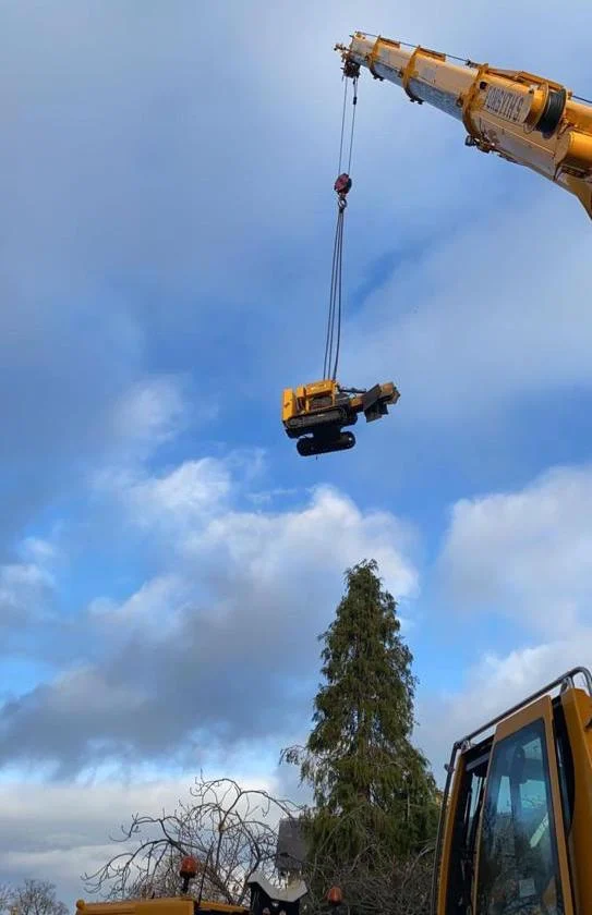 With all the organisation that had gone into this one job, cancellation would not have been an option in the event of bad weather. Thankfully when the time came, we had glorious sunshine for most of the day which was certainly one less thing for our tree surgeon and ground crew to worry about!